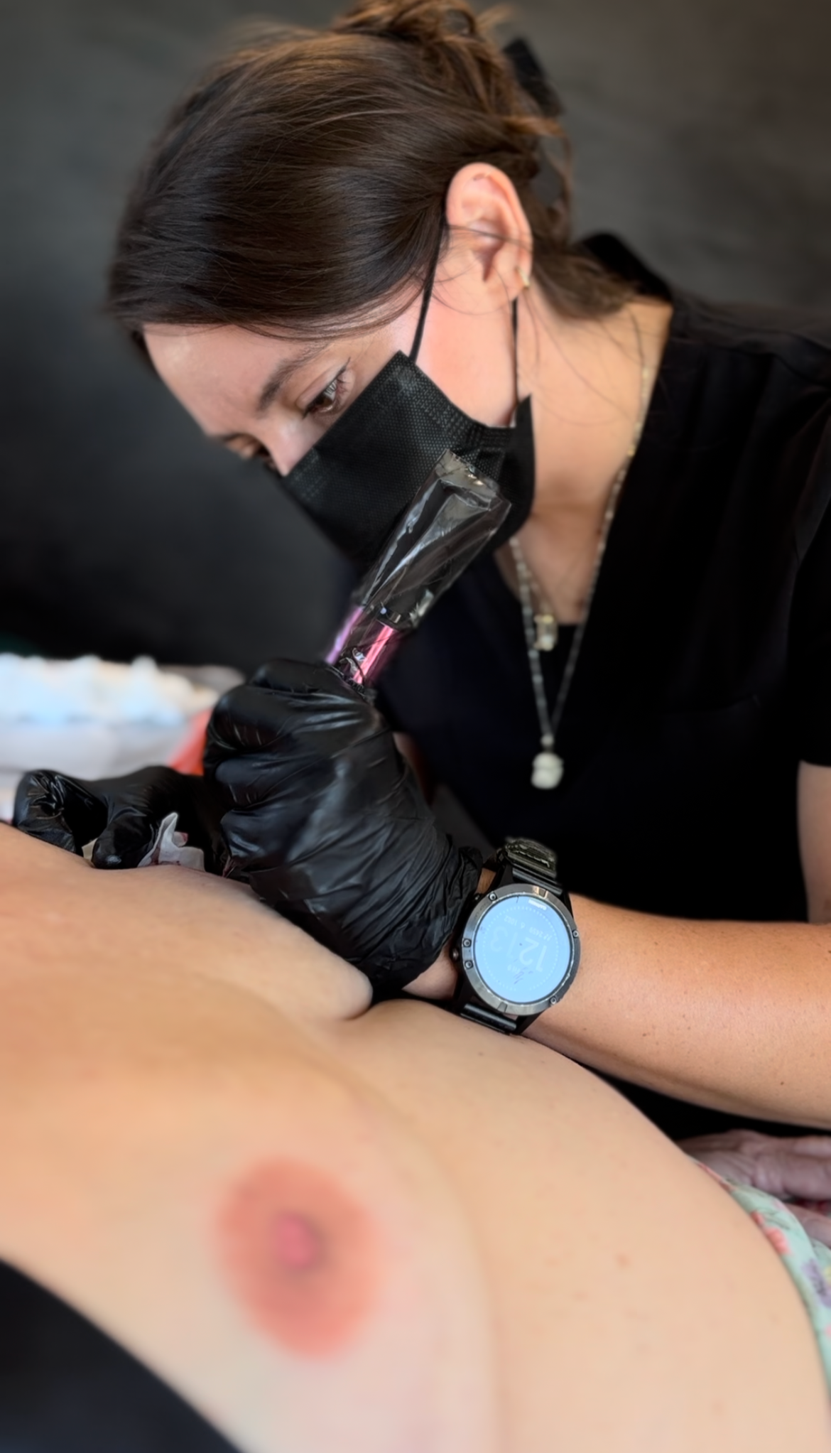 I’m a paramedical tattoo artist offering restorative tattoo and skin treatments, including areola restoration, scar and stretch mark camouflage, inkless revision, Pixie Powder, and custom spray tanning.